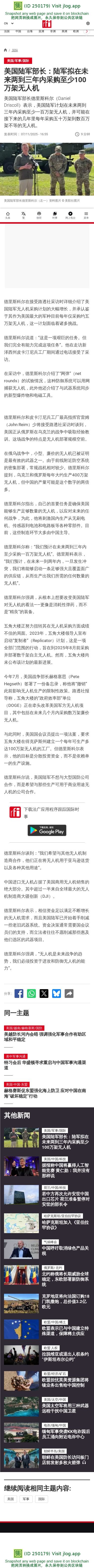 美国陆军部长:陆军拟在未来两到三年内采购至少100万架无人机