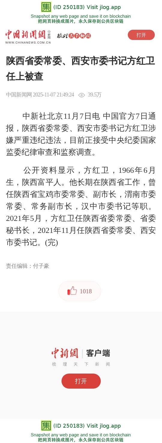 陕西省委常委、西安市委书记方红卫任上被查