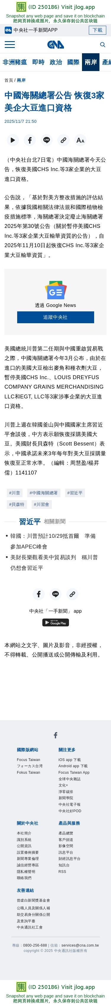 中國海關總署公告 恢復3家美企大豆進口資格 | 兩岸 | 中央社 CNA