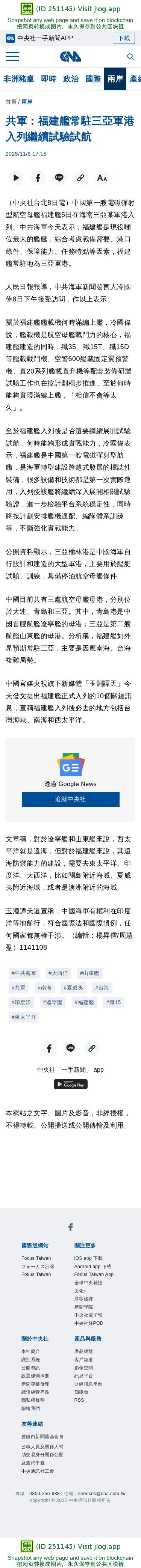 中国第三艘航母“福建舰”入列 – DW – 2025年11月7日