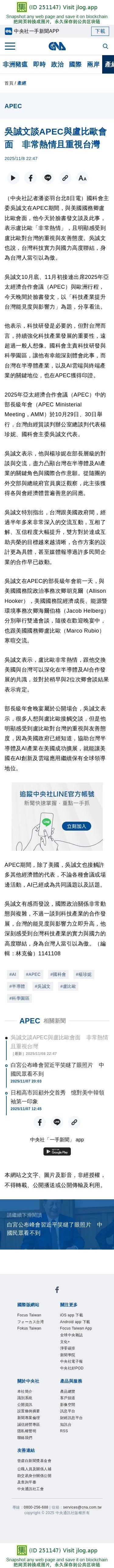 吳誠文談APEC與盧比歐會面 非常熱情且重視台灣 | 產經 | 中央社 CNA