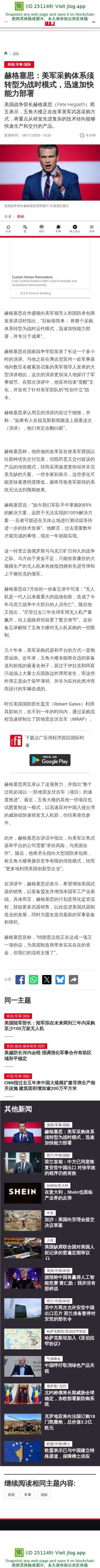 赫格塞思:美军采购体系须转型为战时模式,迅速加快能力部署