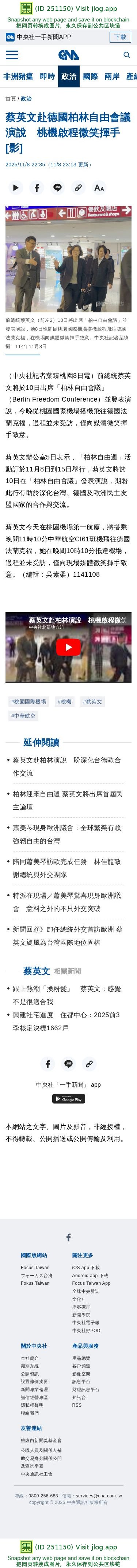 蔡英文赴德國柏林自由會議演說 桃機啟程微笑揮手[影] | 政治 | 中央社 CNA