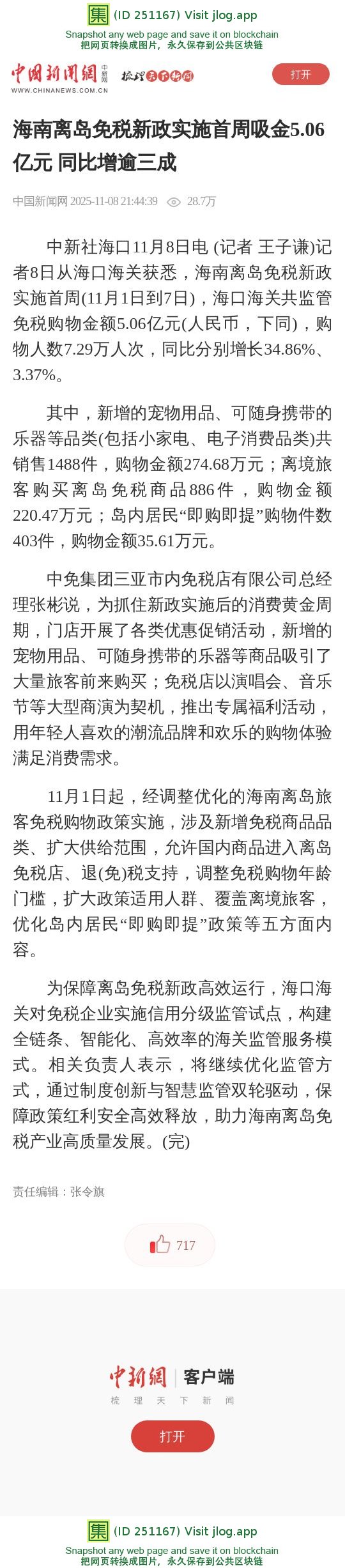 海南离岛免税新政实施首周吸金5.06亿元 同比增逾三成
