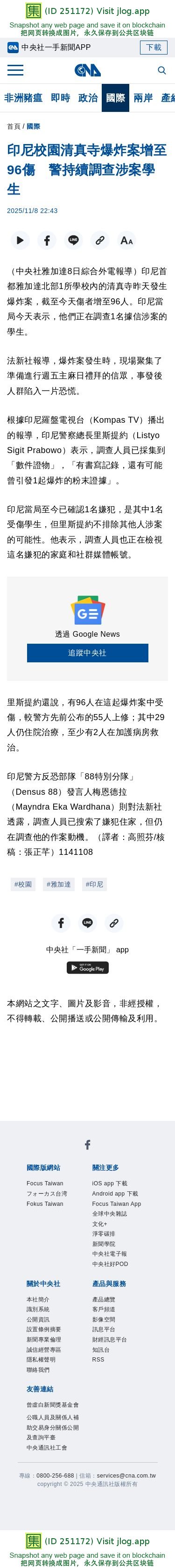 印尼校園清真寺爆炸案增至96傷 警持續調查涉案學生 | 國際 | 中央社 CNA