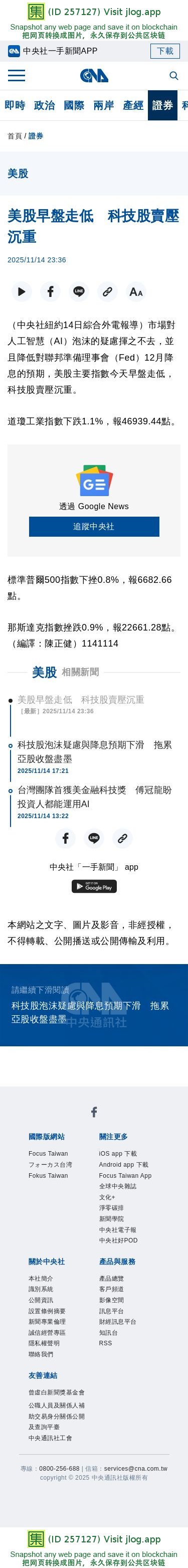 美股早盤走低 科技股賣壓沉重 | 證券 | 中央社 CNA