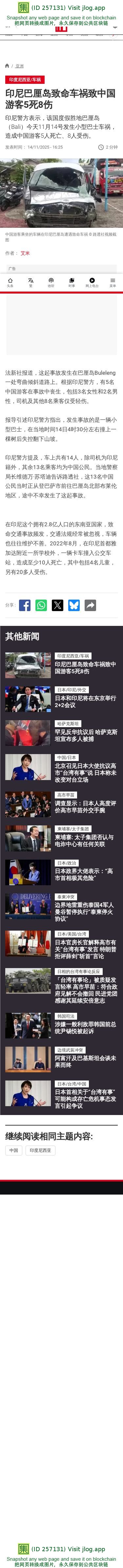 印尼巴厘岛致命车祸致中国游客5死8伤