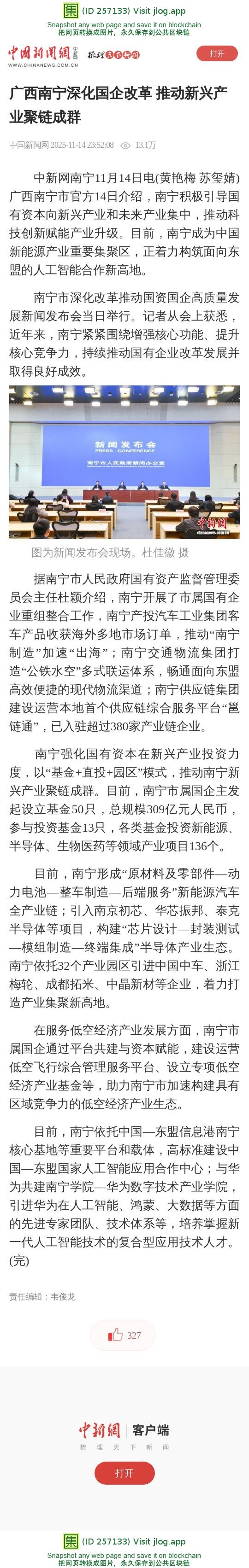 广西南宁深化国企改革 推动新兴产业聚链成群