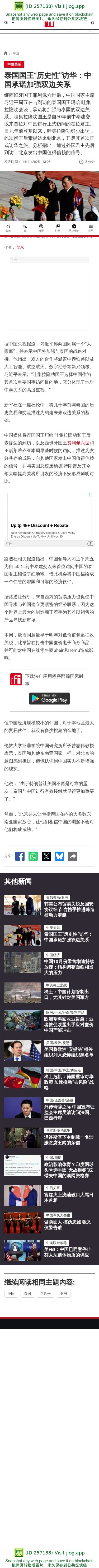 泰国国王“历史性”访华:中国承诺加强双边关系