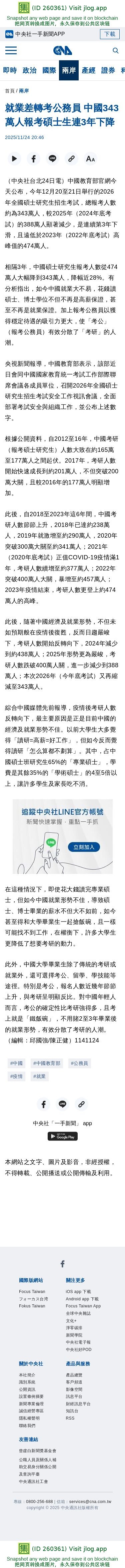 就業差轉考公務員 中國343萬人報考碩士生連3年下降 | 兩岸 | 中央社 CNA