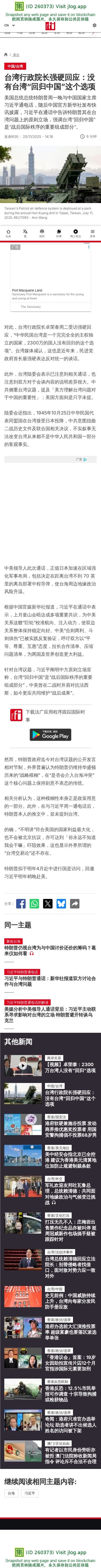 台湾行政院长强硬回应:没有台湾“回归中国”这个选项