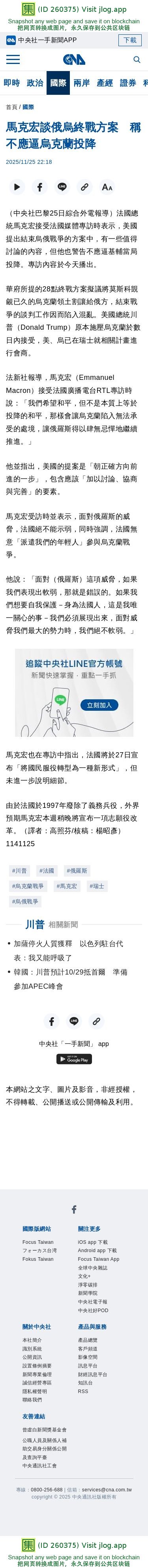 馬克宏談俄烏終戰方案 稱不應逼烏克蘭投降 | 國際 | 中央社 CNA