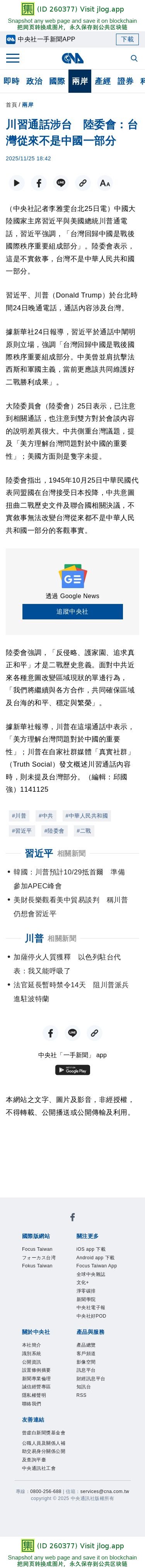 川習通話涉台 陸委會:台灣從來不是中國一部分 | 兩岸 | 中央社 CNA