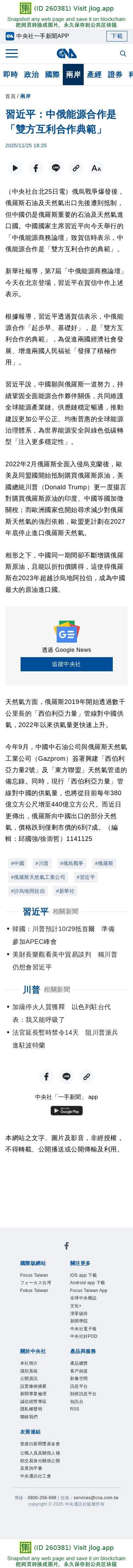 習近平:中俄能源合作是「雙方互利合作典範」 | 兩岸 | 中央社 CNA
