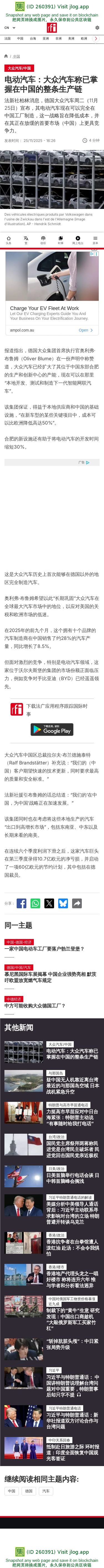 电动汽车:大众汽车称已掌握在中国的整条生产链