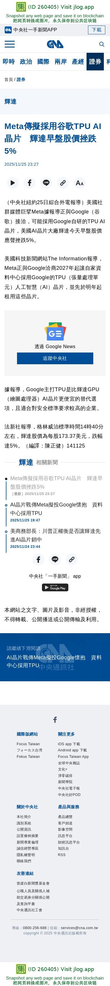 Meta傳擬採用谷歌TPU AI晶片 輝達早盤股價挫跌5% | 證券 | 中央社 CNA