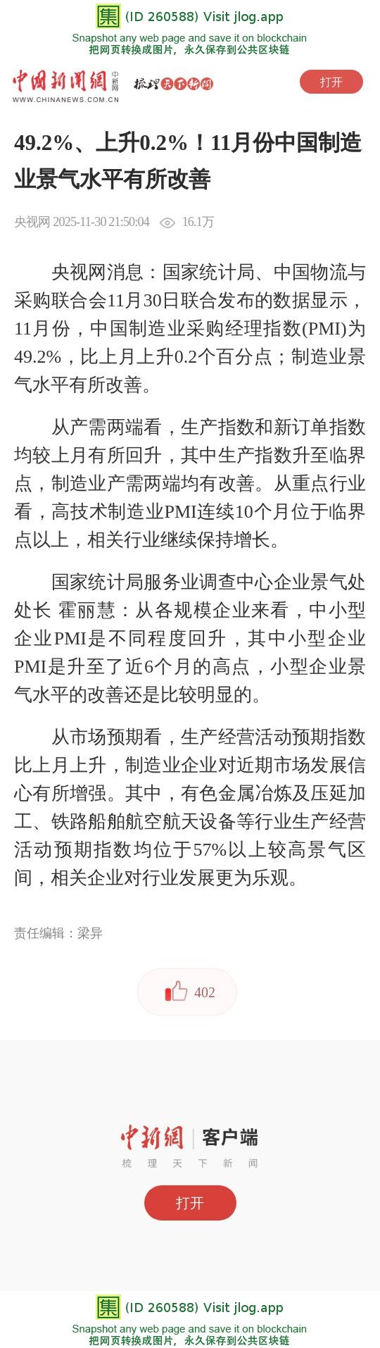 49.2%、上升0.2%!11月份中国制造业景气水平有所改善