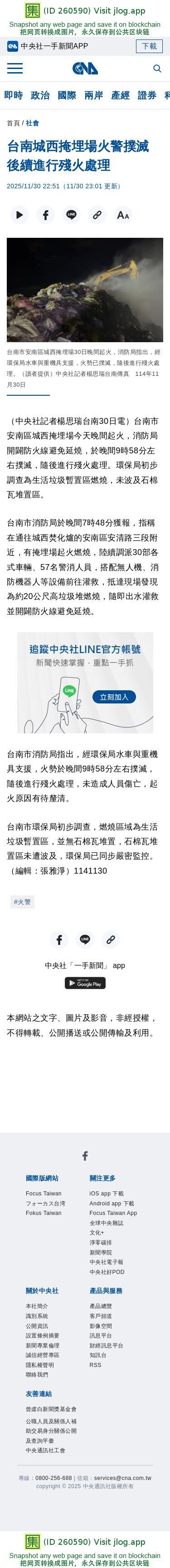 台南城西掩埋場火警撲滅 後續進行殘火處理 | 社會 | 中央社 CNA