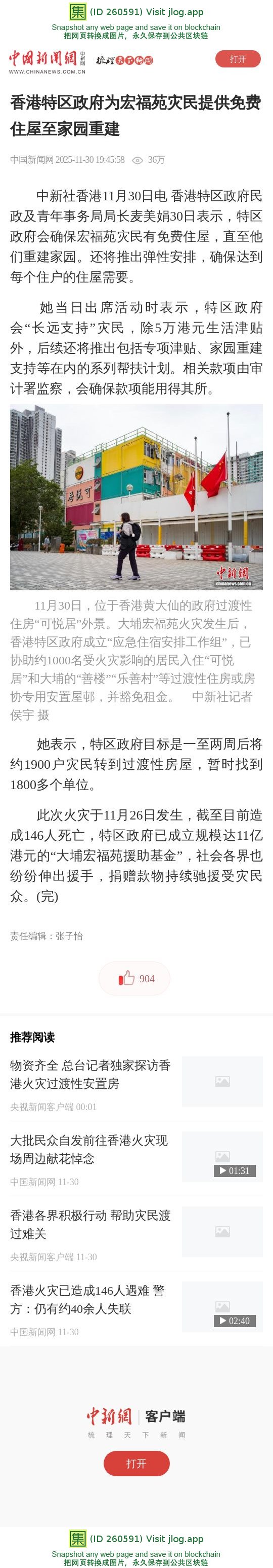 香港特区政府为宏福苑灾民提供免费住屋至家园重建