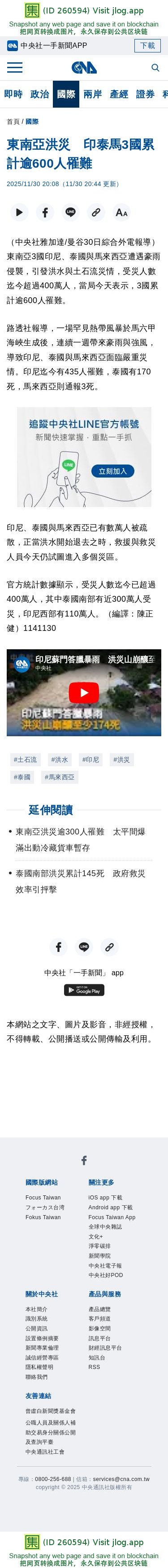 東南亞洪災 印泰馬3國累計逾600人罹難 | 國際 | 中央社 CNA