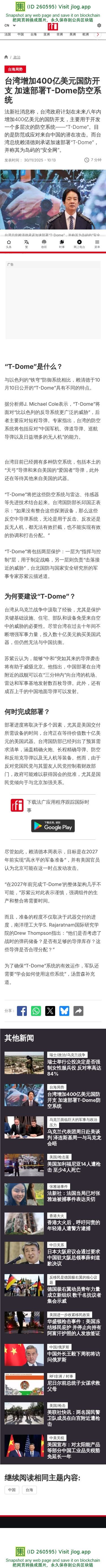 台湾增加400亿美元国防开支 加速部署T-Dome防空系统