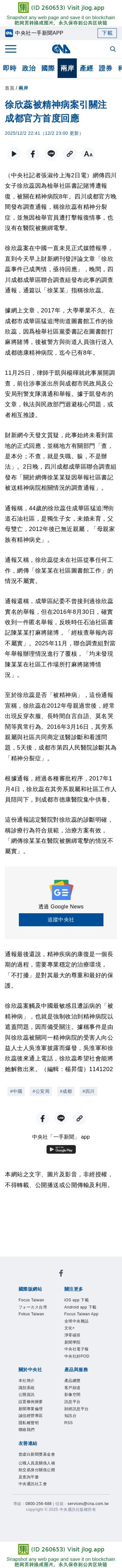 徐欣蕊被精神病案引關注 成都官方首度回應 | 兩岸 | 中央社 CNA