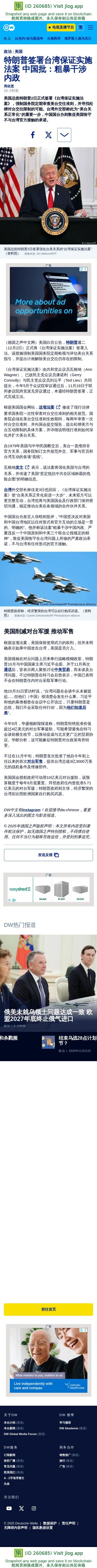 特朗普签署台湾保证实施法案 中国批:粗暴干涉内政 – DW – 2025年12月3日
