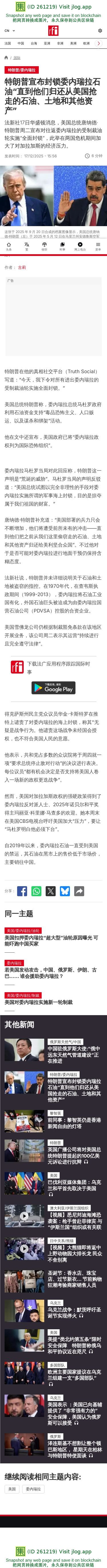特朗普下令对进出委内瑞拉的油轮实施海上封锁 – DW – 2025年12月17日