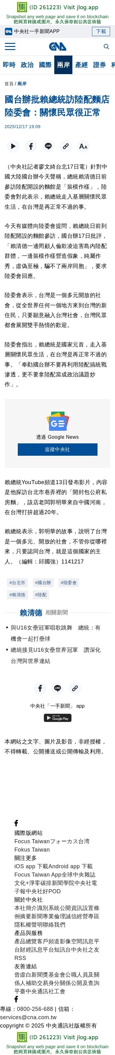 國台辦批賴總統訪陸配麵店 陸委會:關懷民眾很正常 | 兩岸 | 中央社 CNA