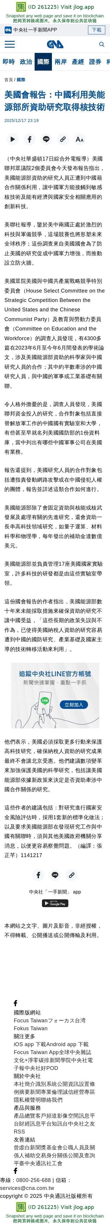 美國會報告:中國利用美能源部所資助研究取得核技術 | 國際 | 中央社 CNA