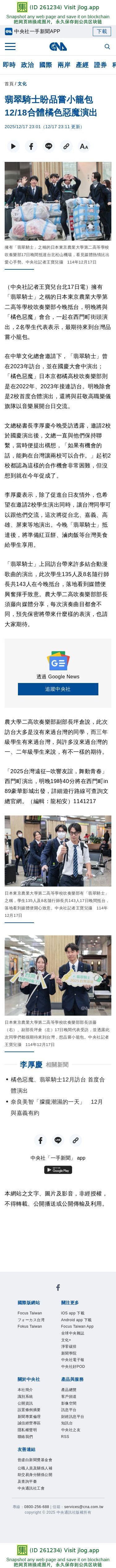 翡翠騎士盼品嘗小籠包 12/18合體橘色惡魔演出 | 文化 | 中央社 CNA