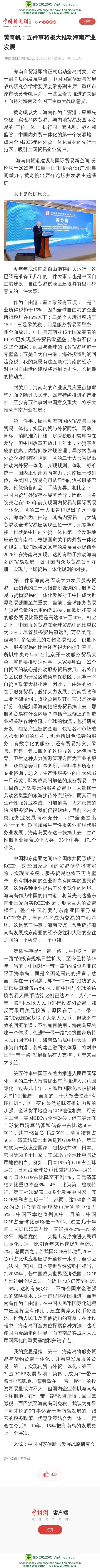 黄奇帆:五件事将极大推动海南产业发展