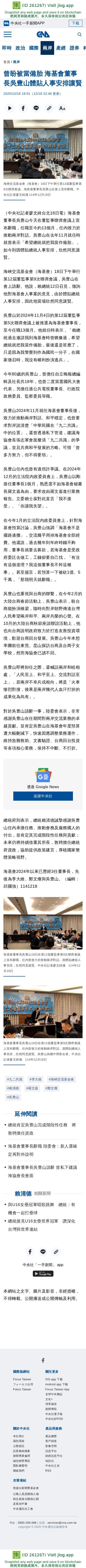 曾盼被當備胎 海基會董事長吳豊山體貼人事安排讓賢 | 兩岸 | 中央社 CNA