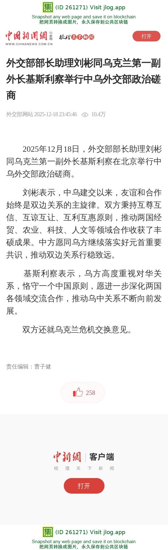 外交部部长助理刘彬同乌克兰第一副外长基斯利察举行中乌外交部政治磋商