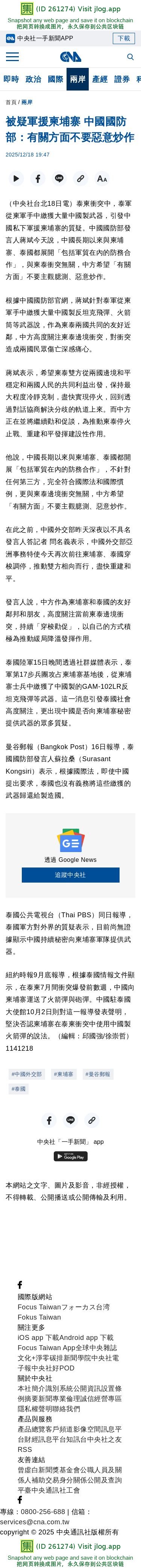 被疑軍援柬埔寨 中國國防部:有關方面不要惡意炒作 | 兩岸 | 中央社 CNA