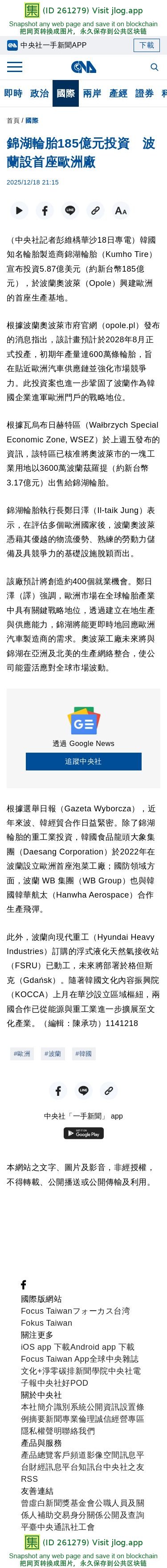錦湖輪胎185億元投資 波蘭設首座歐洲廠 | 國際 | 中央社 CNA