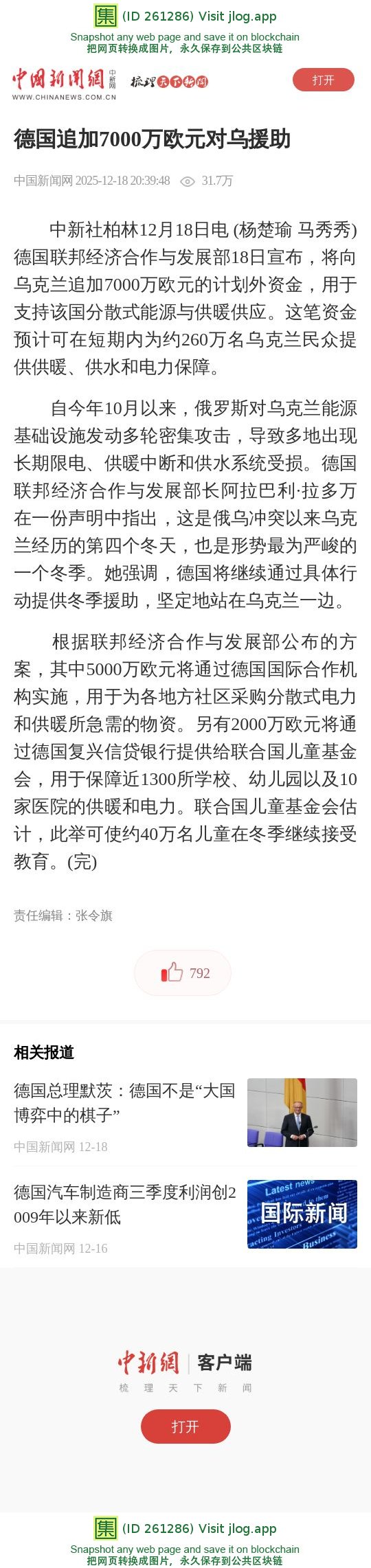 德国追加7000万欧元对乌援助