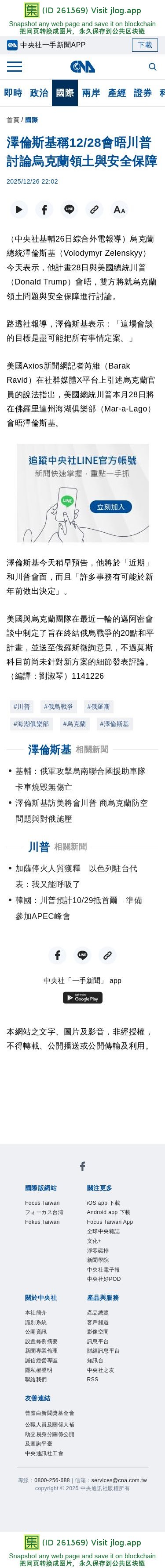 澤倫斯基稱12/28會晤川普 討論烏克蘭領土與安全保障 | 國際 | 中央社 CNA