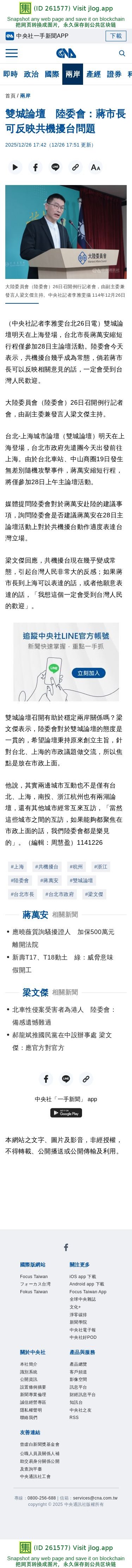 雙城論壇 陸委會:蔣市長可反映共機擾台問題 | 兩岸 | 中央社 CNA