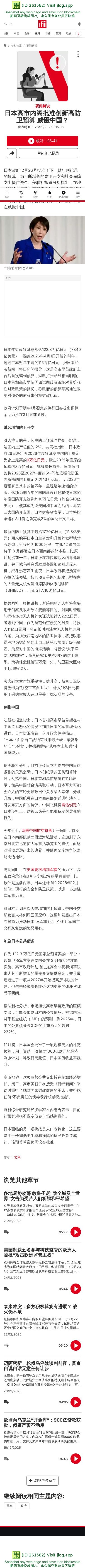 日本高市内阁批准创新高防卫预算 威慑中国? - 要闻解说 - RFI - 法国国际广播电台