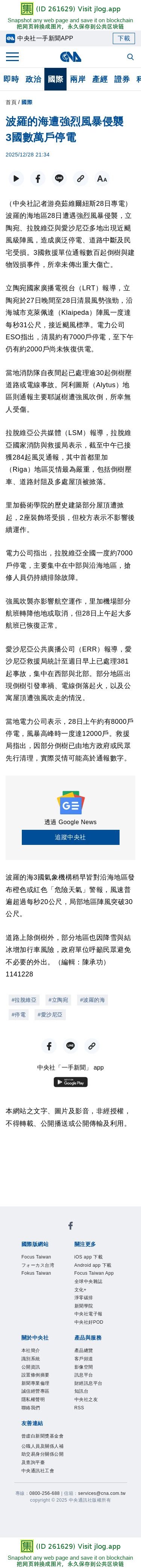 波羅的海遭強烈風暴侵襲 3國數萬戶停電 | 國際 | 中央社 CNA