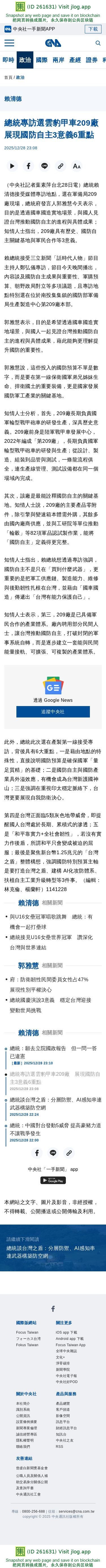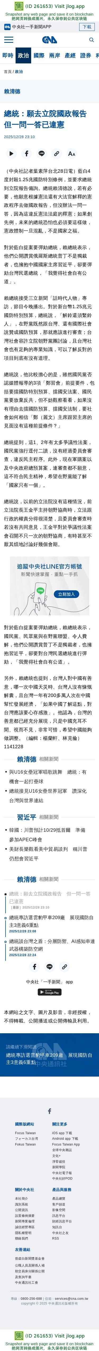 總統:願去立院國政報告 但一問一答已違憲 | 政治 | 中央社 CNA