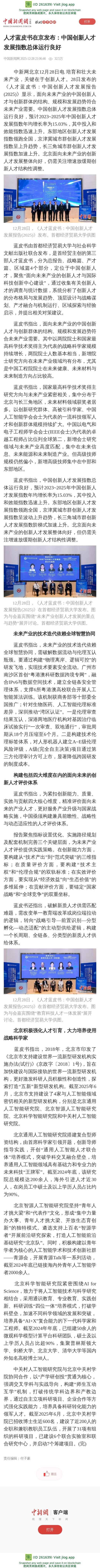 人才蓝皮书在京发布:中国创新人才发展指数总体运行良好
