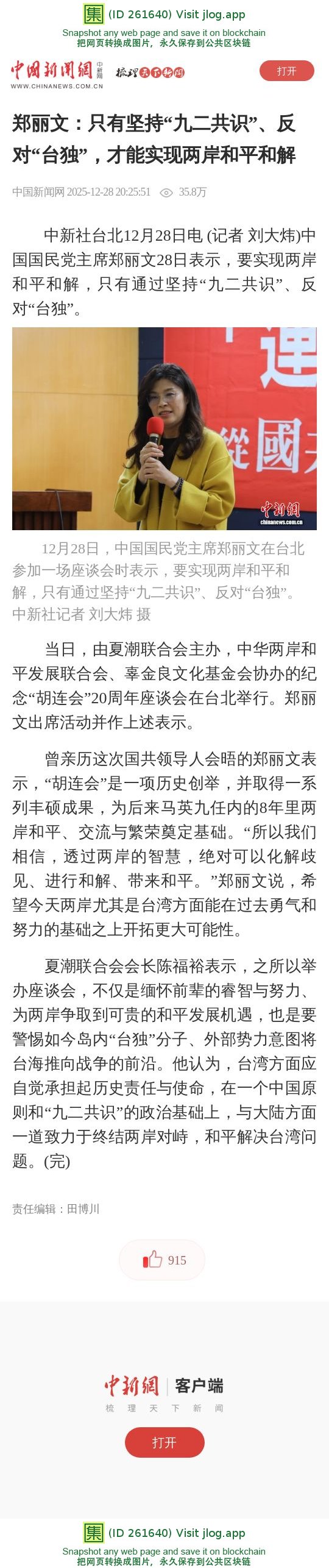 郑丽文:只有坚持“九二共识”、反对“台独”,才能实现两岸和平和解