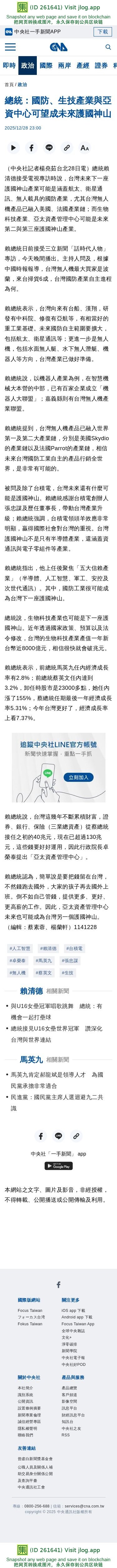 總統:國防、生技產業與亞資中心可望成未來護國神山 | 政治 | 中央社 CNA