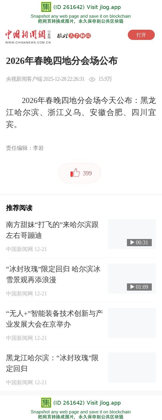 2026年春晚四地分会场公布