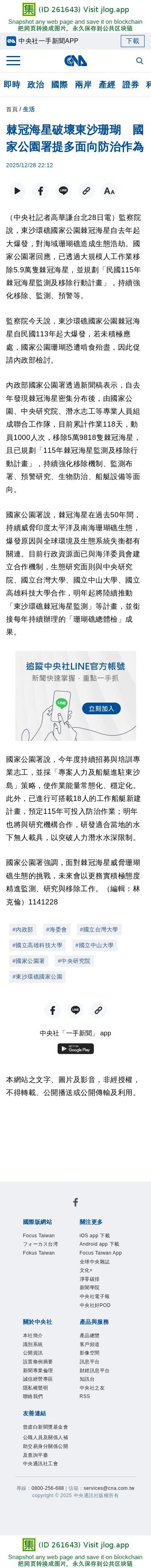 棘冠海星破壞東沙珊瑚 國家公園署提多面向防治作為 | 生活 | 中央社 CNA