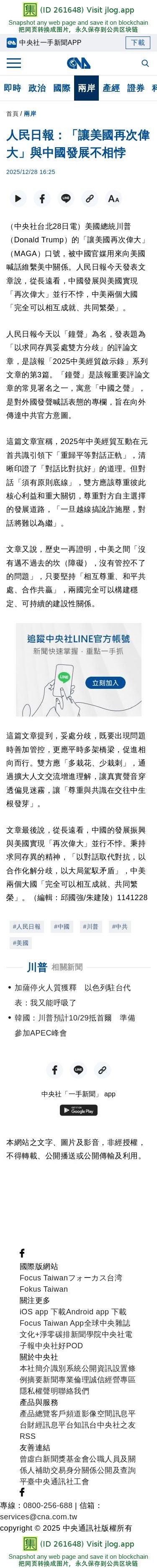 人民日報:「讓美國再次偉大」與中國發展不相悖 | 兩岸 | 中央社 CNA