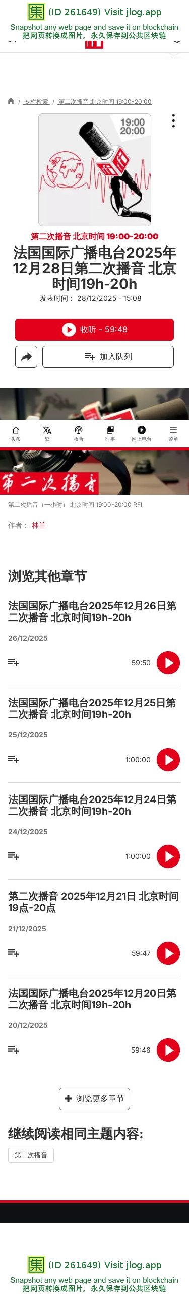 法国国际广播电台2025年12月28日第二次播音 北京时间19h-20h - 第二次播音 北京时间 19:00-20:00 - RFI - 法国国际广播电台