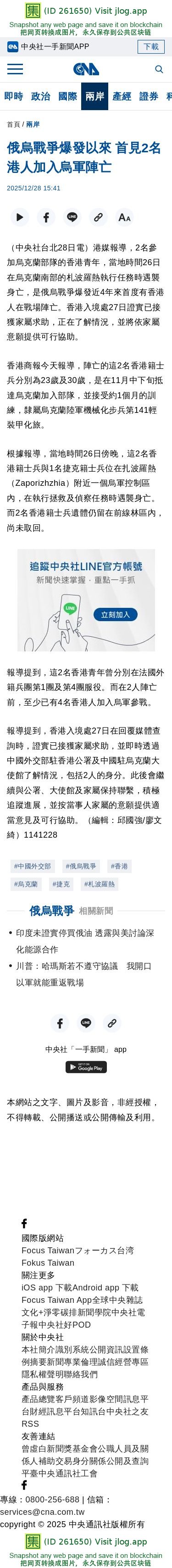 俄烏戰爭爆發以來 首見2名港人加入烏軍陣亡 | 兩岸 | 中央社 CNA